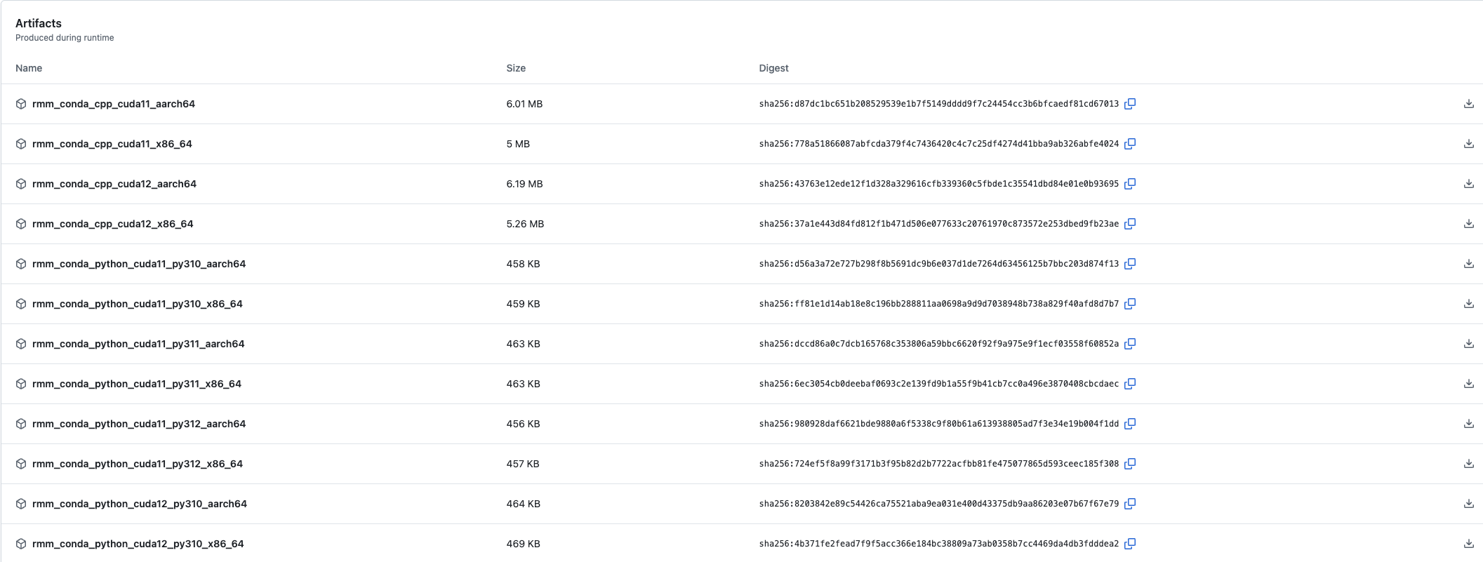 • {artifact-name} = unique identifier for an artifact within one workflow run (e.g. rmm_conda_python_cuda12_py312_x86_64)